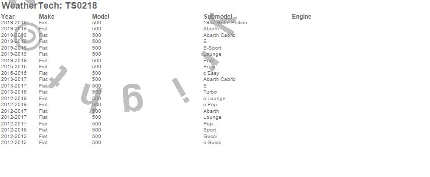 Below is an abbreviated list of applications for the WeatherTech SunShade.500, Fiat, 2019, 2018, 2017, 2016, 2015, 2014, 2013, 2012