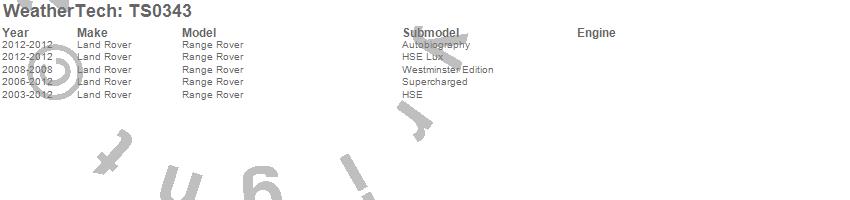 Below is an abbreviated list of applications for the WeatherTech SunShade.Range Rover, Land Rover, 2012, 2011, 2010, 2009, 2008, 2007, 2006, 2005, 2004, 2003