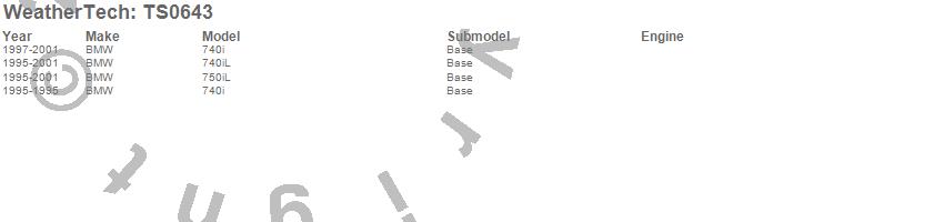 Below is an abbreviated list of applications for the WeatherTech SunShade.740i, 740iL, 750iL, BMW, 2001, 2000, 1999, 1998, 1997, 1996, 1995