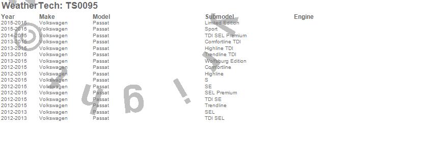 Below is an abbreviated list of applications for the WeatherTech SunShade.Passat, Volkswagen, 2015, 2014, 2013, 2012