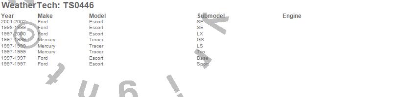 Below is an abbreviated list of applications for the WeatherTech SunShade.Escort, Tracer, Ford, Mercury, 2002, 2001, 2000, 1999, 1998, 1997