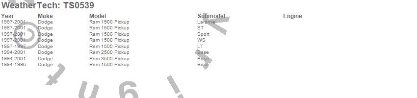 Below is an abbreviated list of applications for the WeatherTech SunShade.Ram 1500, Ram 2500, Ram 3500, Dodge, 2001, 2000, 1999, 1998, 1997, 1996, 1995, 1994