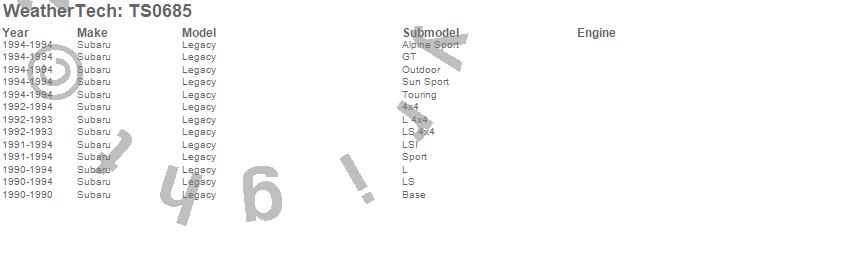Below is an abbreviated list of applications for the WeatherTech SunShade.Legacy, Subaru, 1994, 1993, 1992, 1991, 1990