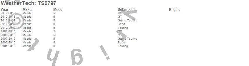 Below is an abbreviated list of applications for the WeatherTech SunShade.5, Mazda, 2013, 2012, 2010, 2009, 2008, 2007, 2006
