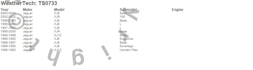 Below is an abbreviated list of applications for the WeatherTech SunShade.XJ12, XJ6, XJ8, XJR, Jaguar, 2003, 2002, 2001, 2000, 1999, 1998, 1997, 1996, 1995, 1994, 1993, 1992, 1991, 1990, 1989