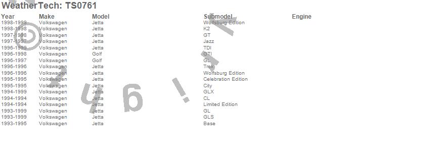 Below is an abbreviated list of applications for the WeatherTech SunShade.Golf, Jetta, Volkswagen, 1999, 1998, 1997, 1996, 1995, 1994, 1993