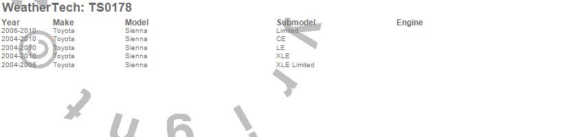 Below is an abbreviated list of applications for the WeatherTech SunShade.Sienna, Toyota, 2010, 2009, 2008, 2007, 2006, 2005, 2004