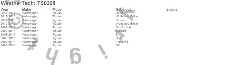 Below is an abbreviated list of applications for the WeatherTech SunShade.Tiguan, Volkswagen, 2017, 2016, 2015, 2014, 2013, 2012, 2011, 2010, 2009