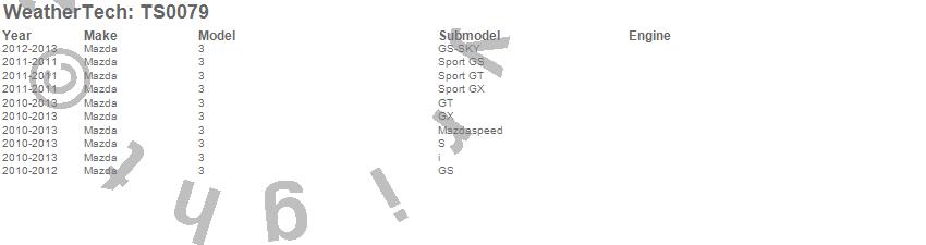 Below is an abbreviated list of applications for the WeatherTech SunShade.3, Mazda, 2013, 2012, 2011, 2010