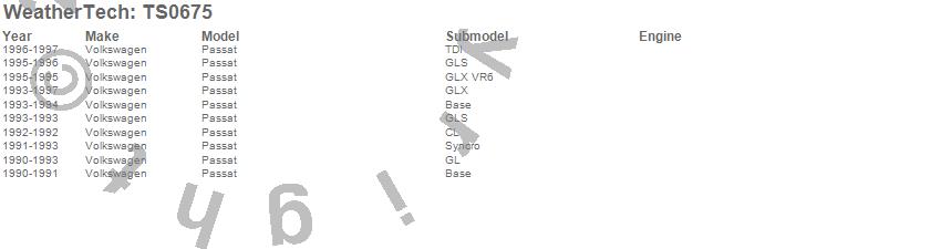 Below is an abbreviated list of applications for the WeatherTech SunShade.Passat, Volkswagen, 1997, 1996, 1995, 1994, 1993, 1992, 1991, 1990