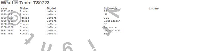 Below is an abbreviated list of applications for the WeatherTech SunShade.LeMans, Pontiac, 1993, 1992, 1991, 1990, 1989, 1988