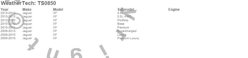 Below is an abbreviated list of applications for the WeatherTech SunShade.XF, Jaguar, 2013, 2012, 2011, 2010, 2009