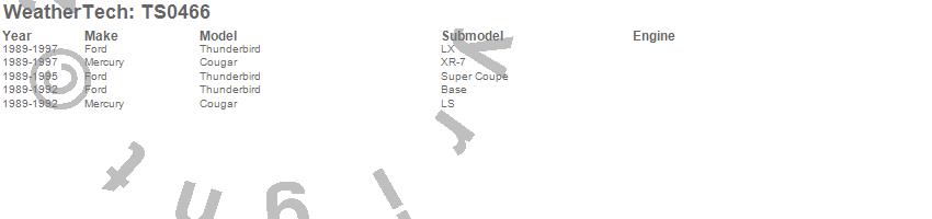 Below is an abbreviated list of applications for the WeatherTech SunShade.Cougar, Thunderbird, Ford, Mercury, 1997, 1996, 1995, 1994, 1993, 1992, 1991, 1990, 1989