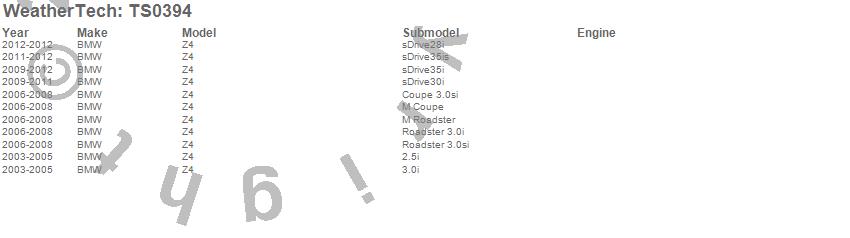 Below is an abbreviated list of applications for the WeatherTech SunShade.Z4, BMW, 2012, 2011, 2010, 2009, 2008, 2007, 2006, 2005, 2004, 2003