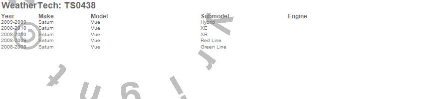 Below is an abbreviated list of applications for the WeatherTech SunShade.Vue, Saturn, 2010, 2009, 2008