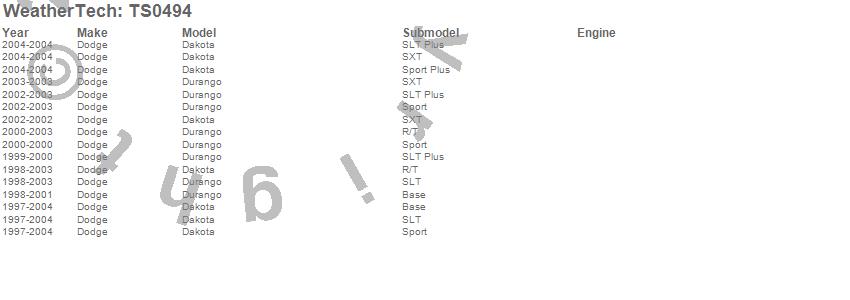 Below is an abbreviated list of applications for the WeatherTech SunShade.Dakota, Durango, Dodge, 2004, 2003, 2002, 2001, 2000, 1999, 1998, 1997