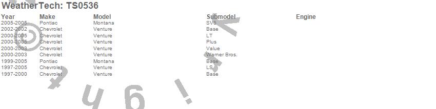 Below is an abbreviated list of applications for the WeatherTech SunShade.Montana, Venture, Chevrolet, Pontiac, 2005, 2004, 2003, 2002, 2001, 2000, 1999, 1998, 1997