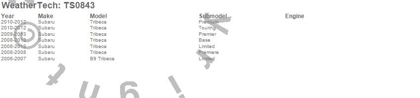 Below is an abbreviated list of applications for the WeatherTech SunShade.B9 Tribeca, Tribeca, Subaru, 2013, 2012, 2011, 2010, 2009, 2008, 2007, 2006