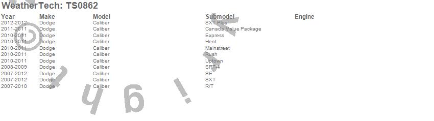 Below is an abbreviated list of applications for the WeatherTech SunShade.Caliber, Dodge, 2012, 2011, 2010, 2009, 2008, 2007