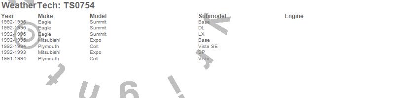 Below is an abbreviated list of applications for the WeatherTech SunShade.Colt, Expo, Summit, Eagle, Mitsubishi, Plymouth, 1996, 1995, 1994, 1993, 1992, 1991