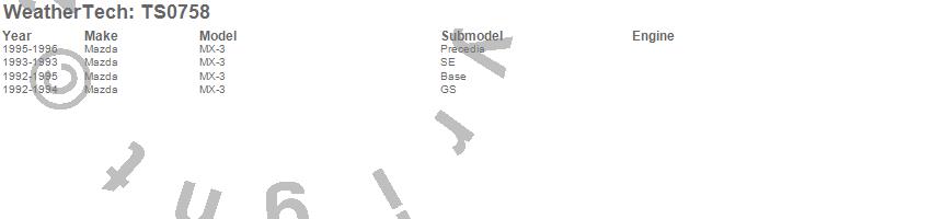 Below is an abbreviated list of applications for the WeatherTech SunShade.MX-3, Mazda, 1996, 1995, 1994, 1993, 1992