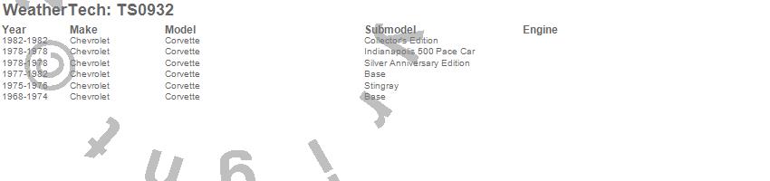 Below is an abbreviated list of applications for the WeatherTech SunShade.Corvette, Chevrolet, 1982, 1981, 1980, 1979, 1978, 1977, 1976, 1975, 1974, 1973, 1972, 1971, 1970, 1969, 1968