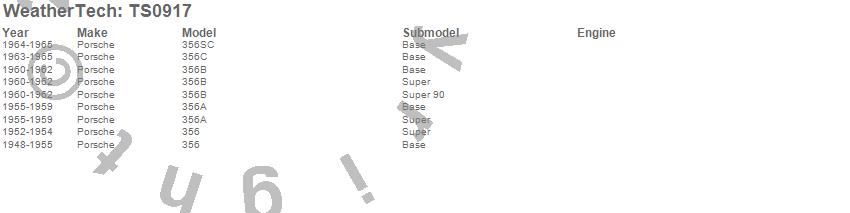 Below is an abbreviated list of applications for the WeatherTech SunShade.356, 356A, 356B, 356C, 356SC, Porsche, 1965, 1964, 1963, 1962, 1961, 1960, 1959, 1958, 1957, 1956, 1955, 1954, 1953, 1952