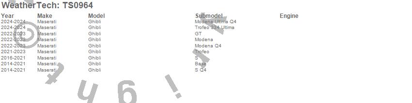 Below is an abbreviated list of applications for the WeatherTech SunShade.Ghibli, Maserati, 2024, 2023, 2022, 2021, 2020, 2019, 2018, 2017, 2016, 2015, 2014
