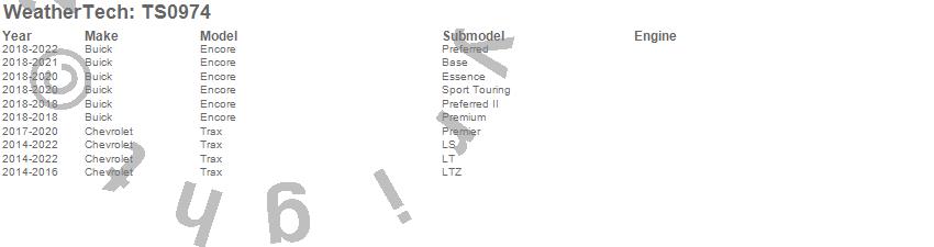 Below is an abbreviated list of applications for the WeatherTech SunShade.Encore, Trax, Buick, Chevrolet, 2022, 2021, 2020, 2019, 2018, 2017, 2016, 2015, 2014