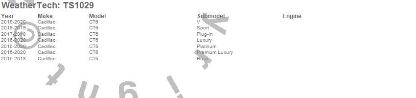 Below is an abbreviated list of applications for the WeatherTech SunShade.CT6, Cadillac, 2020, 2019, 2018, 2017, 2016