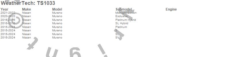 Below is an abbreviated list of applications for the WeatherTech SunShade.Murano, Nissan, 2024, 2023, 2022, 2021, 2020, 2019, 2018, 2017, 2016, 2015