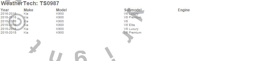 Below is an abbreviated list of applications for the WeatherTech SunShade.K900, Kia, 2016, 2015