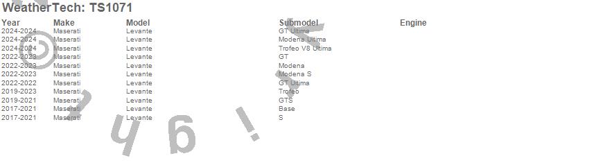 Below is an abbreviated list of applications for the WeatherTech SunShade.Levante, Maserati, 2024, 2023, 2022, 2021, 2020, 2019, 2018, 2017