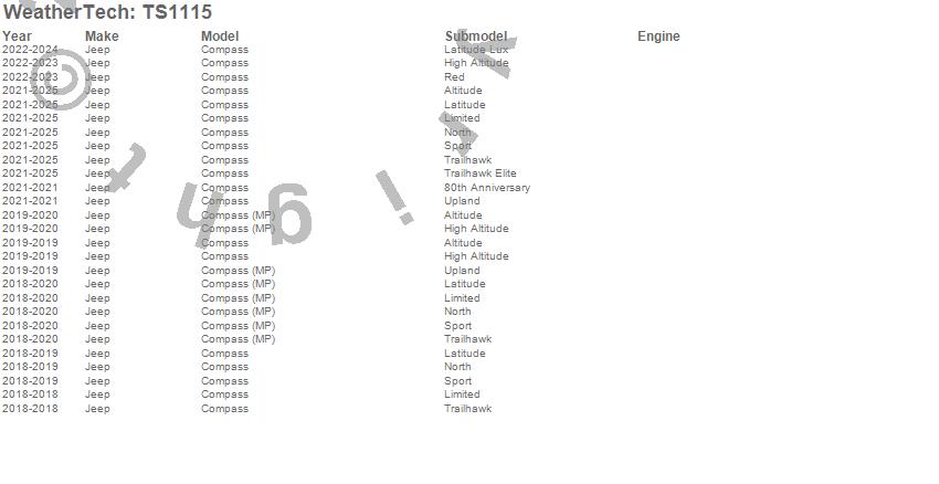 Below is an abbreviated list of applications for the WeatherTech SunShade.Compass, Jeep, 2026, 2025, 2024, 2023, 2022, 2021, 2020, 2019, 2018, 2017