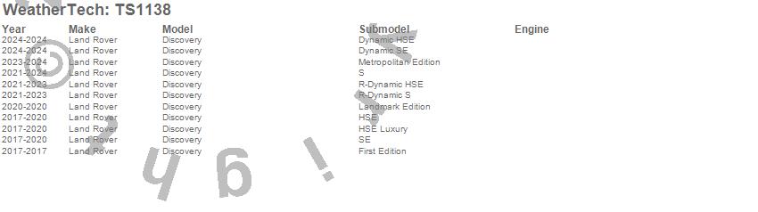 Below is an abbreviated list of applications for the WeatherTech SunShade.Discovery, Land Rover, 2024, 2023, 2022, 2021, 2020, 2019, 2018, 2017