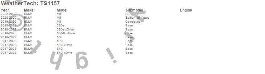 Below is an abbreviated list of applications for the WeatherTech SunShade.530e, 530e xDrive, 530i, 530i xDrive, 540i, 540i xDrive, M5, M550i xDrive, BMW, 2023, 2022, 2021, 2020, 2019, 2018, 2017