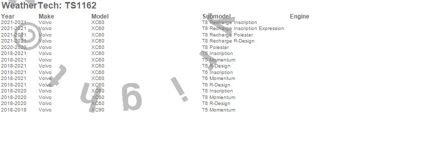 Below is an abbreviated list of applications for the WeatherTech SunShade.XC60, XC90, Volvo, 2021, 2020, 2019, 2018