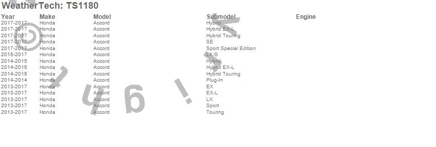 Below is an abbreviated list of applications for the WeatherTech SunShade.Accord, Honda, 2017, 2016, 2015, 2014, 2013