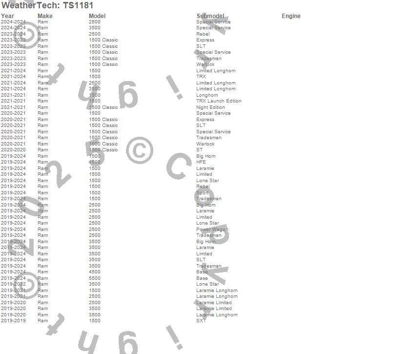 Below is an abbreviated list of applications for the WeatherTech SunShade.1500, 1500 Classic, 2500, 3500, 4500, 5500, Ram, 2024, 2023, 2022, 2021, 2020, 2019