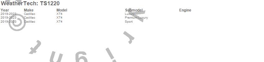 Below is an abbreviated list of applications for the WeatherTech SunShade.XT4, Cadillac, 2023, 2022, 2021, 2020, 2019