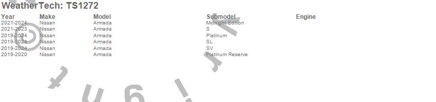 Below is an abbreviated list of applications for the WeatherTech SunShade.Armada, Nissan, 2024, 2023, 2022, 2021, 2020, 2019