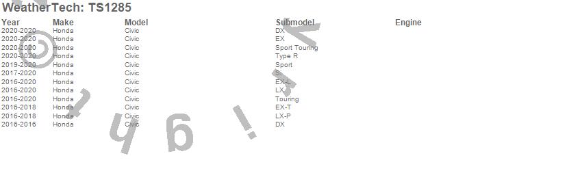 Below is an abbreviated list of applications for the WeatherTech SunShade.Civic, Honda, 2020, 2019, 2018, 2017, 2016