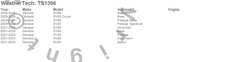 Below is an abbreviated list of applications for the WeatherTech SunShade.GV80, GV80 Coupe, Genesis, 2026, 2025, 2024, 2023, 2022, 2021