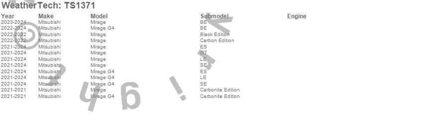 Below is an abbreviated list of applications for the WeatherTech SunShade.Mirage, Mirage G4, Mitsubishi, 2024, 2023, 2022, 2021