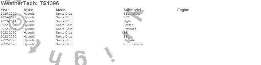 Below is an abbreviated list of applications for the WeatherTech SunShade.Santa Cruz, Hyundai, 2026, 2025, 2024, 2023, 2022