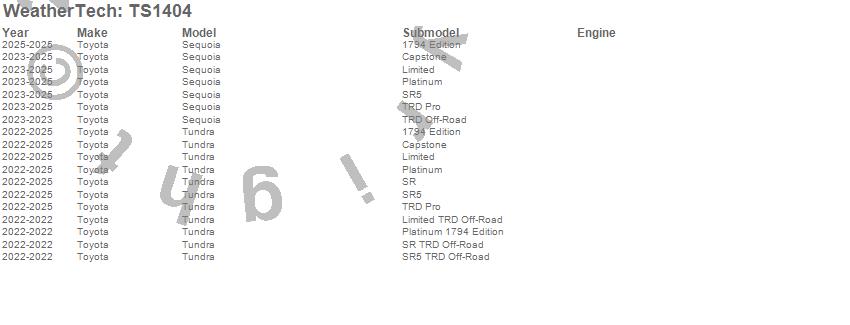Below is an abbreviated list of applications for the WeatherTech SunShade.Sequoia, Tundra, Toyota, 2025, 2024, 2023, 2022