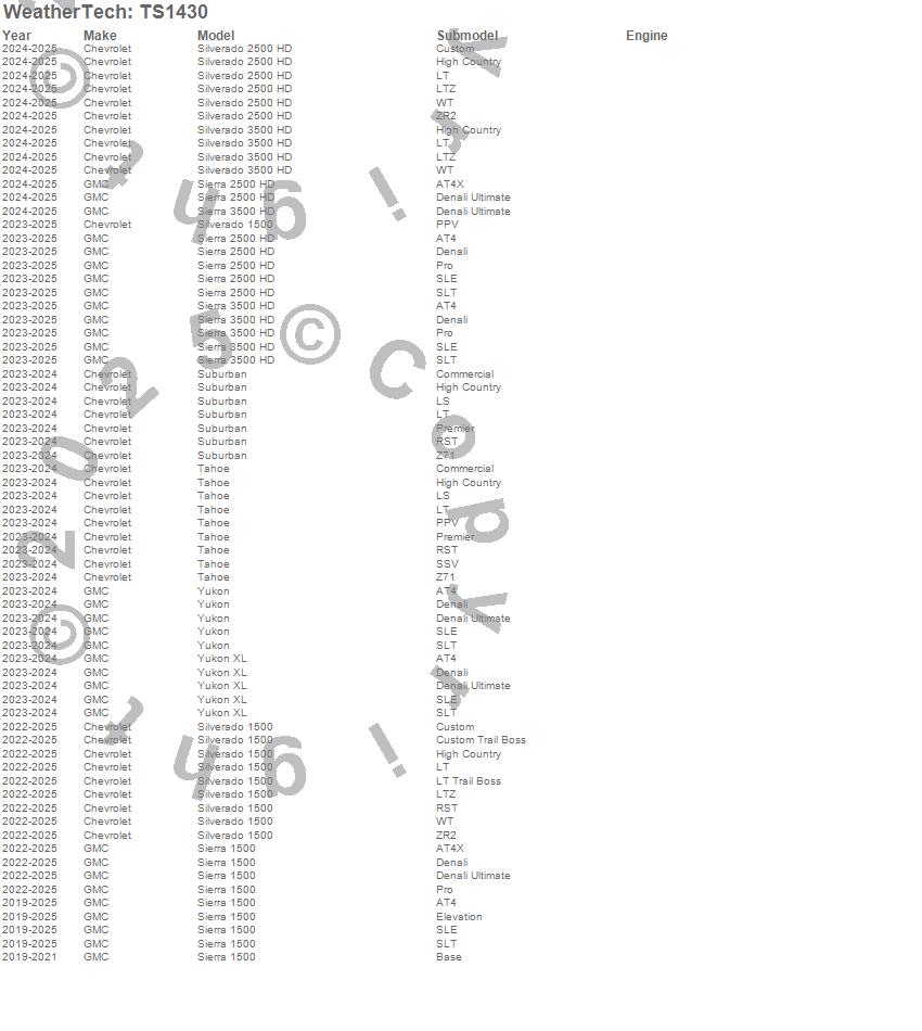 Below is an abbreviated list of applications for the WeatherTech SunShade.Sierra 1500, Sierra 2500 HD, Sierra 3500 HD, Silverado 1500, Silverado 2500 HD, Silverado 3500 HD, Suburban, Tahoe, Yukon, Yukon XL, Chevrolet, GMC, 2026, 2025, 2024, 2023, 2022, 2021, 2020, 2019