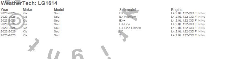 Below is an abbreviated list of applications for the LampGard.Soul, Kia, 2025, 2024, 2023