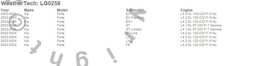 Below is an abbreviated list of applications for the LampGard.Forte, Kia, 2024, 2023, 2022