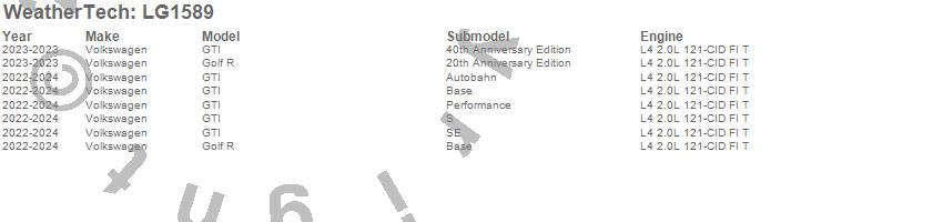 Below is an abbreviated list of applications for the LampGard.Golf R, GTI, Volkswagen, 2024, 2023, 2022